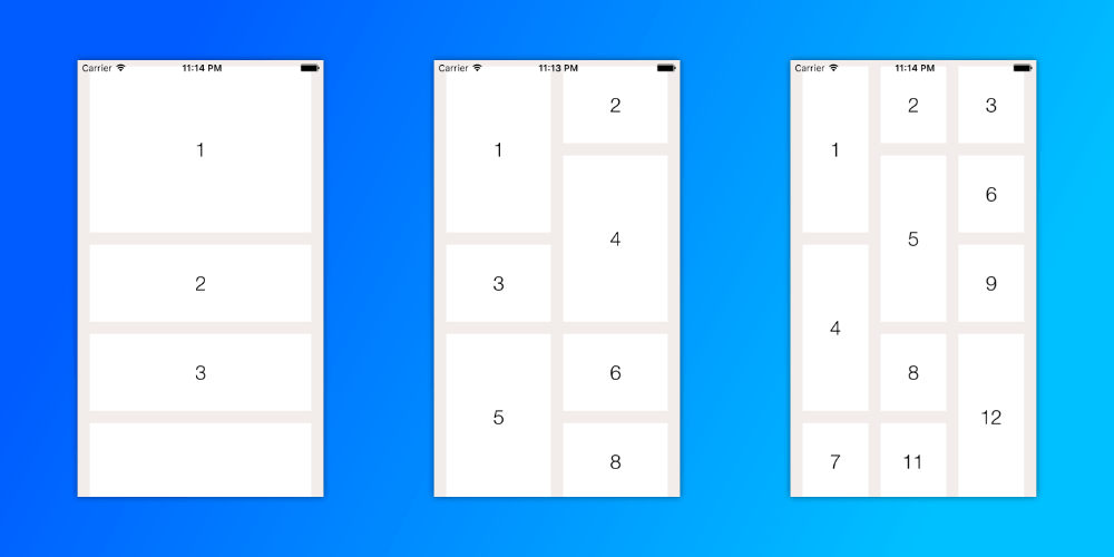 Think of this like the Pinterest mobile layout, where you have two columns of pins. Alternatively, many photos apps (probably) use collection views to display their contents. Accordingly for these more complex arrangements, they can be slightly more complicated to implement from a development standpoint.